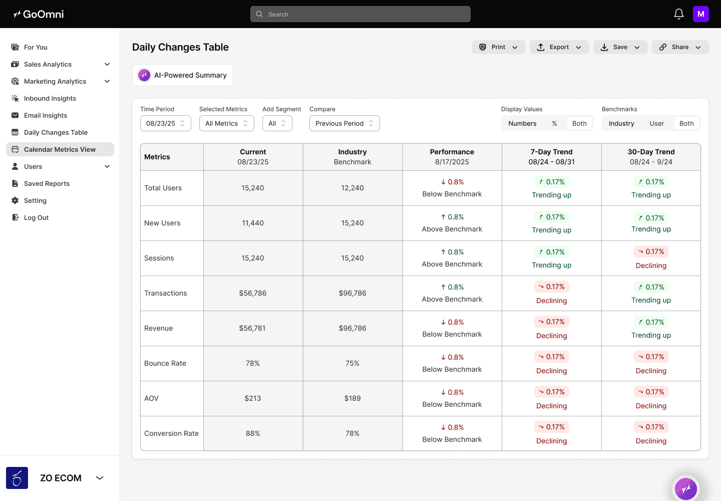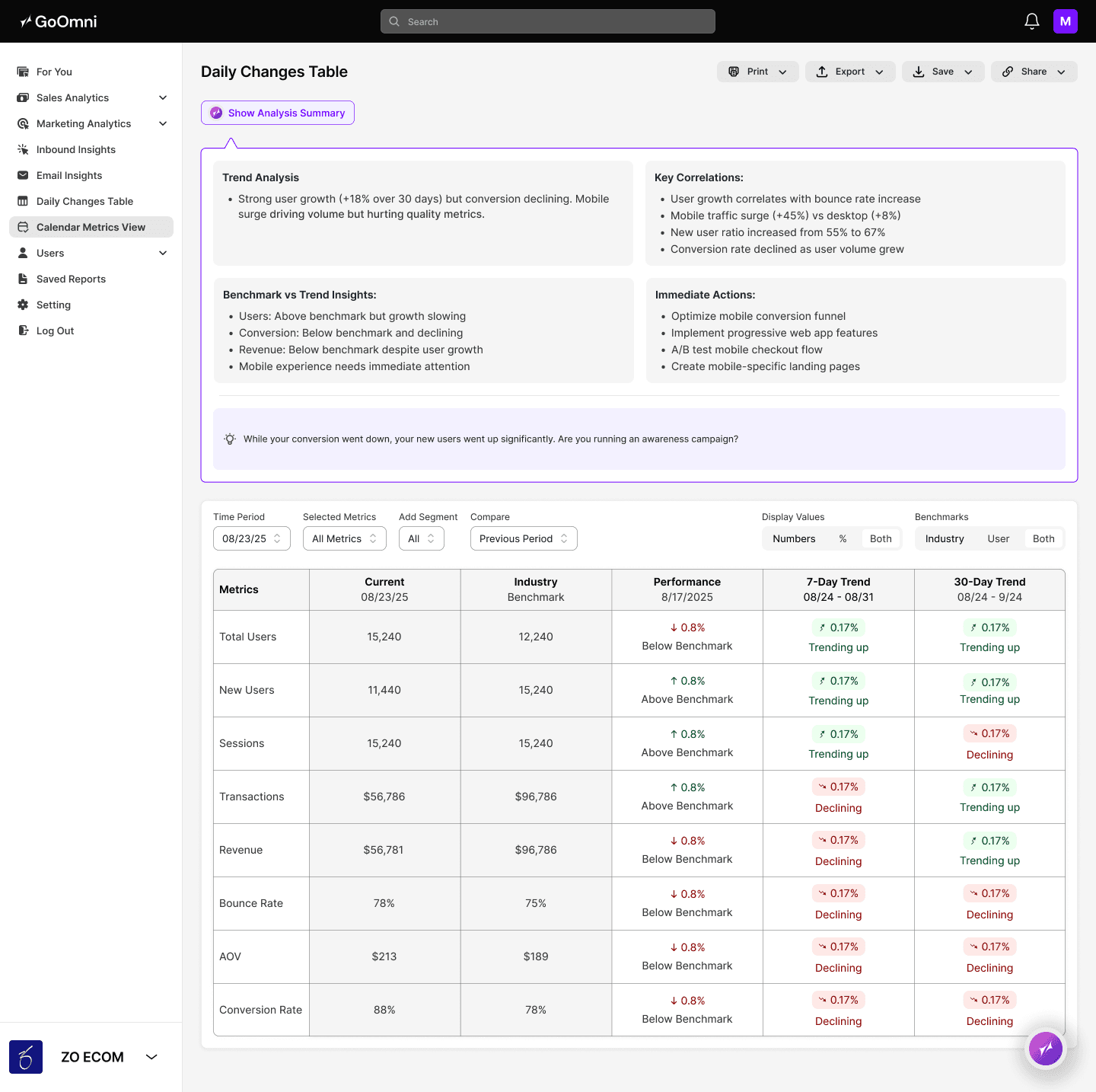GoOmni.AI was officially launched in November 2024, successfully transforming a technical data "mess" into a human-centric intelligence hub. By automating the data flow from GA4, SFCC, and Klaviyo, the platform has become a daily habit that replaces "spreadsheet stitching" with actionable intelligence.