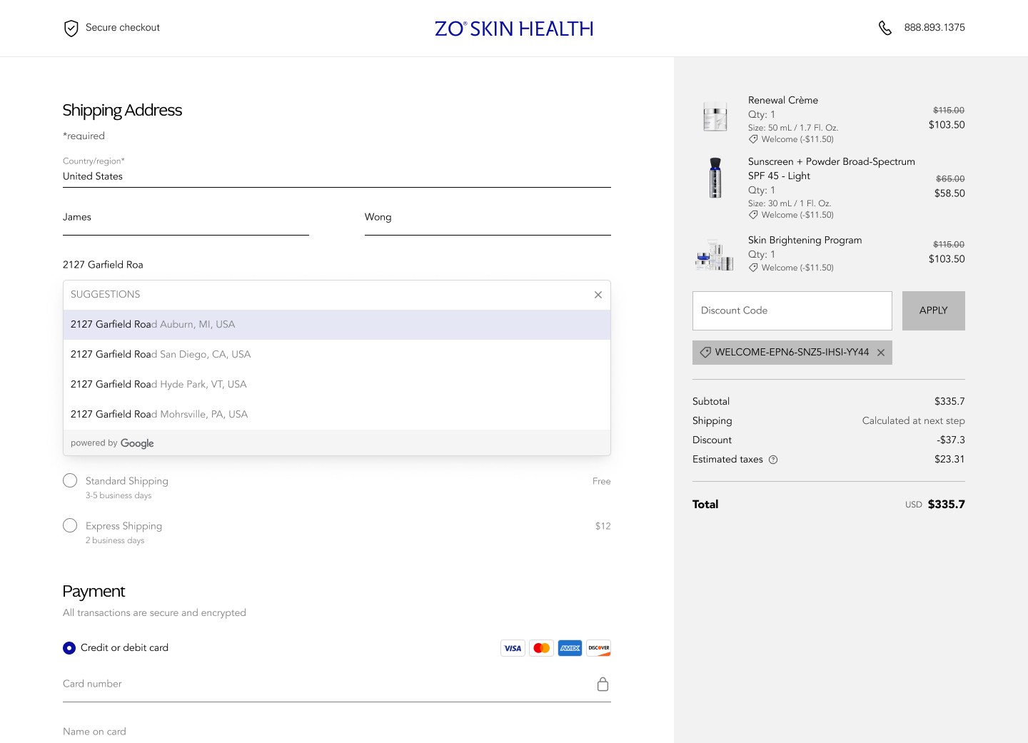 Description: Once the address is provided, the system auto-selects the first shipping option. This removes the need for a manual click before the payment phase.